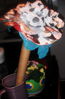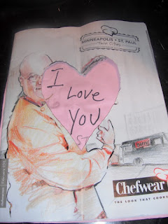 So today, even thought he wasn’t feeling it, and just wanted to go to TaeKwonDo, like he does every Tuesday, honey made me a flower. Made of hearts cut out of the chefware catalog.