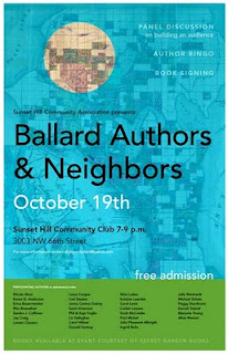 Come on out to Sunset Hill Community Club, 7-9pm, and join in the fun. Read the Ballard News Tribune article for more information and a peek at some of the authors that will be there.