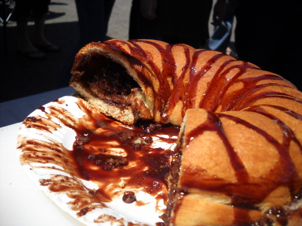 But the best, in my humble, chocolate addicted opinion, was the dessert by father and daughter team Troy and Hayley. They baked this out of donut dough, mixed with chocolate and who knows what else (I need to ask for the recipe), topped with ice cream. Oh yeah. You see them slicing like mad because they had a line out their tent.