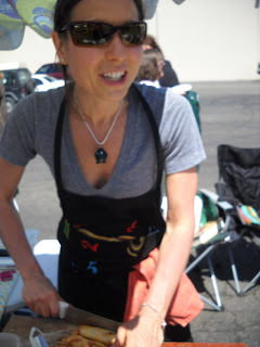 The next egglady, Jill Van Berkom, is truly a Jill of all trades. She’s an artist AND she churned out fabulous pizzas all day. Notice her hand crafted bead…of a Big Green Egg…on her necklace.