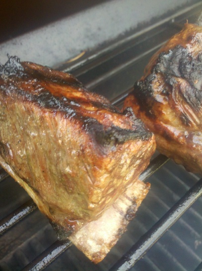 I love beef short ribs. I like them sliced thin on the cross cut (marinated long, then grilled hot and fast) and I like the thick cross cut sections like these. They need a fair amount of time to get tender, but I love the flavor from direct grilling.