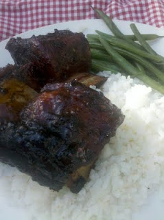 The final glaze gave these ribs a nice sweet ending. I mixed equal parts strawberry jam with apricot nectar juice, plus 3-4 tablespoons of Worchestershire sauce. The kids loved it. 3 1/2 hours on indirect heat, after some direct grill time was perfect to get them tender. These were pretty small. The short ribs we get in the shop that Eric cuts with the bandsaw are much much bigger and need more time.