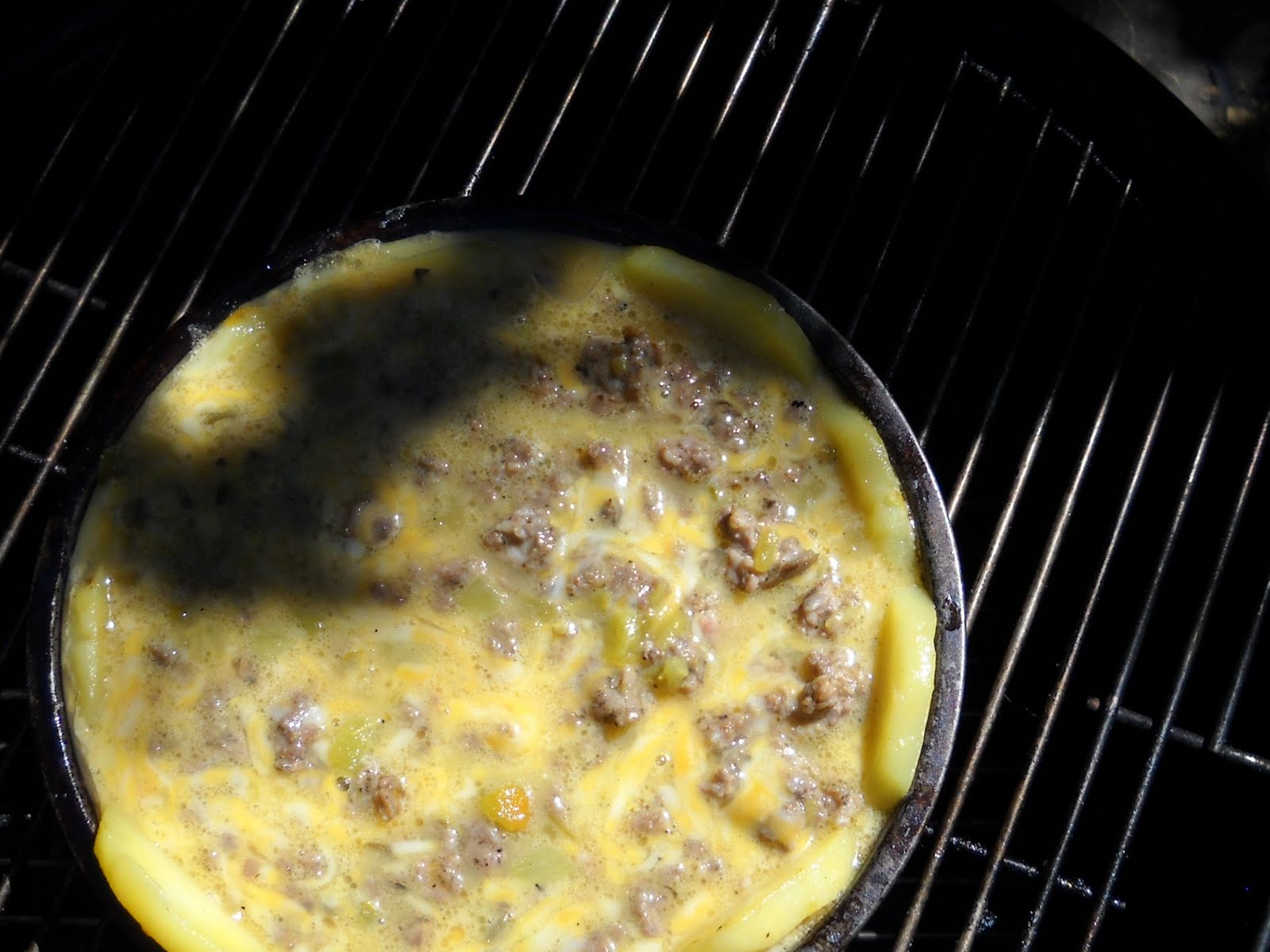 7) Pour the egg mixture in the pan and place on grill.