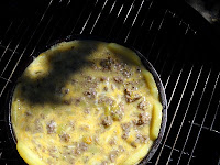 Both dishes were so easy and were enhanced by the imparted charcoal flavor that I must share them with you. The first is a Southwest Frittata with Yukon Gold Potato Crust.