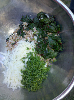 I still kind of think that, but I do see what all the hub bub is about. The kernels are so…meaty. And they take on flavors so delicately. E’ bellissimo, the farro. Farro, by the way, is a generic word for wheat in Italy, and they note it as farro small, medium, or large. The stuff that we get in the expensive little bag at the fancy grocery store, is a very large variety. It may actually be some variety of spelt.