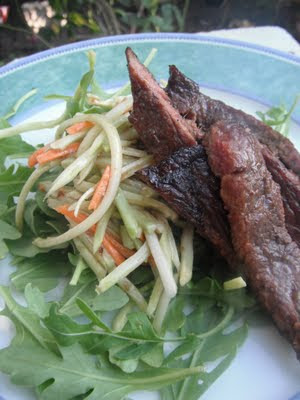 Cut the beef against the grain, diagonally and toss. Mmmm, and not a speck of guilt.