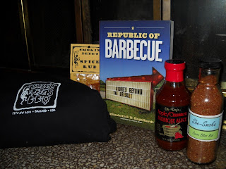 A bottle of my signature Cocoa Bliss rub rounds out the package, plus my review copy of the amazing book, Republic of Barbecue: Stories Beyond The Brisket. I hate to give it up, but it’s the kosher thing to do. Sigh. It’s really a great book. Luckily, I’m heading right into the Central TX land it examines, so I’ll be living it on the tour.
